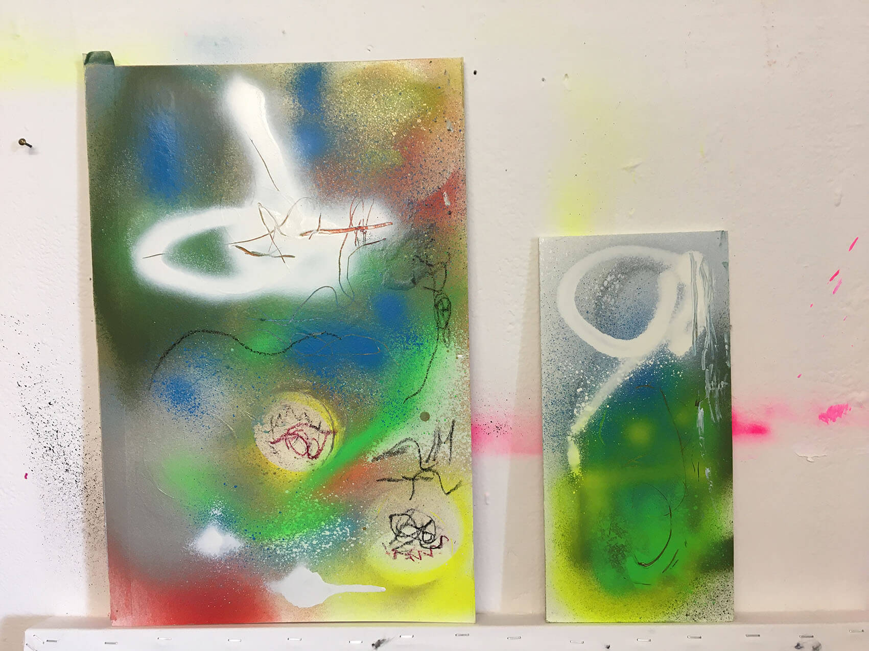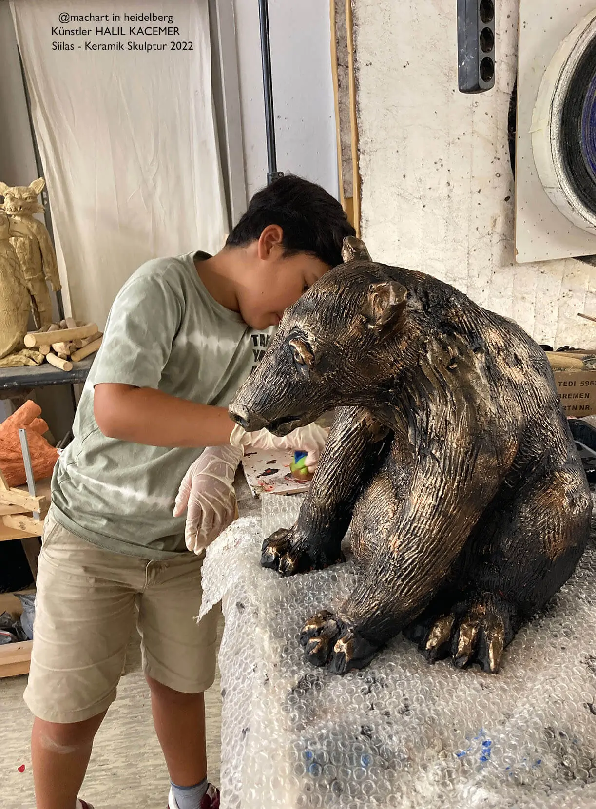 Siilas wurde bereits im zarten Babyalter als Nacktmodell in die Farbenwelt hineingeführt und er rollte sich durch die Farben. Danach kamen Finger, Füße, Body  und später der Pinsel, Stifte und dann auch die Sprühdosen zum Einsatz.  Aus seinen Spielsachen, die er cool fand, wurden ebenso neue Objekte kreiert. Er hatte Zugang zu seinem kreativen Genius. Im Atelier liebt er es, sich an meinen Materialien bedienen zu können und mit Musik im Hintergrund läuft die kreative Energie und die Farbe dann um so mehr. Auch sein Dad Jop Arsianto unterstützt ihn als Musiker und Künstler pädagogisch  mit seinem kulturellen Background als Indonesier in seinen Anlagen auf seine Art und Weise. Er führt Siilas in seine Techniken ein und zeigt ihm, dass die Kunst keine Hürde ist , die es zu meistern gibt, sondern in uns allen angelegt ist;  es gilt nur, sie  freizulegen und  die konstante Übung macht aus uns allen  MeisterInnen.